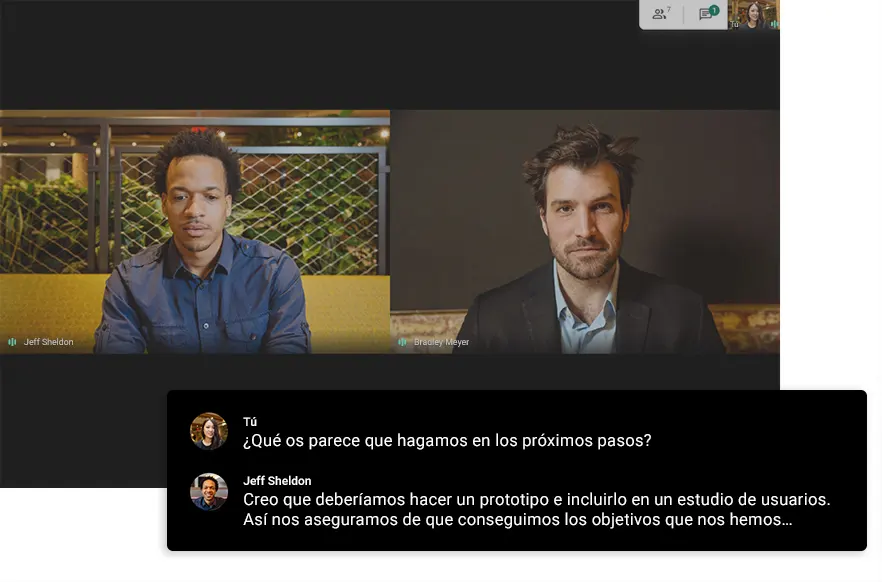 • Claridad: Meet se adapta a la velocidad de su red para hacer las reuniones de gran calidad sin importar donde esté. Gracias a las nuevas mejoras de la IA el sonido de las reuniones puede ser nítido sin importar si hay demasiado ruido alrededor.